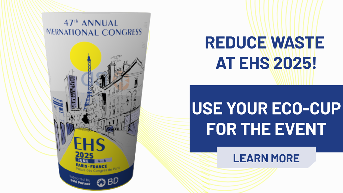 When you arrive at the Congress, you will receive your own EHS 2025 eco-cup, at the dedicated desk next to the cloakroom (Level 1). We ask that you keep this cup with you throughout the whole duration of the Congress.